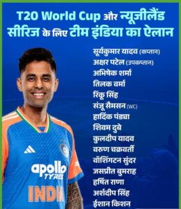 टी20 सीरीज के लिए भारतीय क्रिकेट कंट्रोल बोर्ड (BCCI) ने 15 सदस्यीय टीम की घोषणा कर दी है। खास बात यह है कि न्यूजीलैंड के खिलाफ खेलने वाली यही भारतीय टी20 टीम आगामी टी20 वर्ल्ड कप में भी देश का प्रतिनिधित्व करेगी। वहीं न्यूजीलैंड क्रिकेट बोर्ड की ओर से अभी तक टी20 सीरीज के लिए टीम का ऐलान नहीं किया गया है।