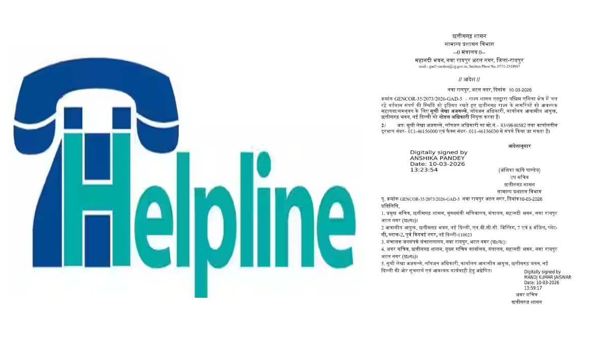 सामान्य प्रशासन विभाग (GAD) द्वारा जारी आदेश के अनुसार लेखा अजगल्ले, लॉयजन अधिकारी, कार्यालय आवासीय आयुक्त, छत्तीसगढ़ भवन नई दिल्ली को नोडल अधिकारी बनाया गया है। उन्हें पश्चिम एशिया क्षेत्र में आवागमन और वहां मौजूद छत्तीसगढ़ के नागरिकों को आवश्यक सहायता उपलब्ध कराने की जिम्मेदारी दी गई है।