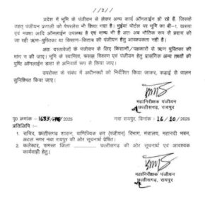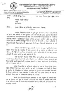 पंजीयन एवं अधीक्षक मुद्रांक महानिरीक्षक कार्यालय द्वारा प्रदेश के तमाम जिला पंजीयकों को ऋण पुस्तिका की अनिवार्यता समाप्त करने के संबंध में पत्र जारी किया है. इसमें पंजीयकों से अधीनस्थों को जमीन की खरीदी-बिक्री में ऋण पुस्तिका की अनिवार्यकता समाप्त किए जाने के संबंध में निर्देशित करते हुए इसका कड़ाई से पालन सुनिश्चित करने कहा गया है.