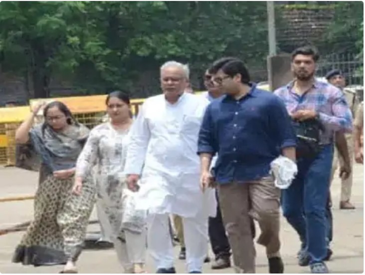 बेटे से मिलने सेंट्रल जेल पहुंचे पूर्व CM भूपेश बघेल:पूरा परिवार साथ में, 3 महीने से जेल में बंद है चैतन्य बघेल