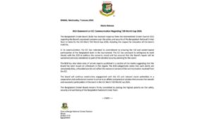 ICC के आदेश के बाद बांग्लादेश क्रिकेट बोर्ड ने इस पूरे मामले पर अपना आधिकारिक पक्ष रखा है। BCB ने बयान जारी कर कहा है कि उन्हें ICC की ओर से लिखित जवाब मिल गया है, जिसमें भारत में बांग्लादेश टीम की सुरक्षा और हिफाजत को लेकर बोर्ड की चिंताओं का समाधान किया गया है।