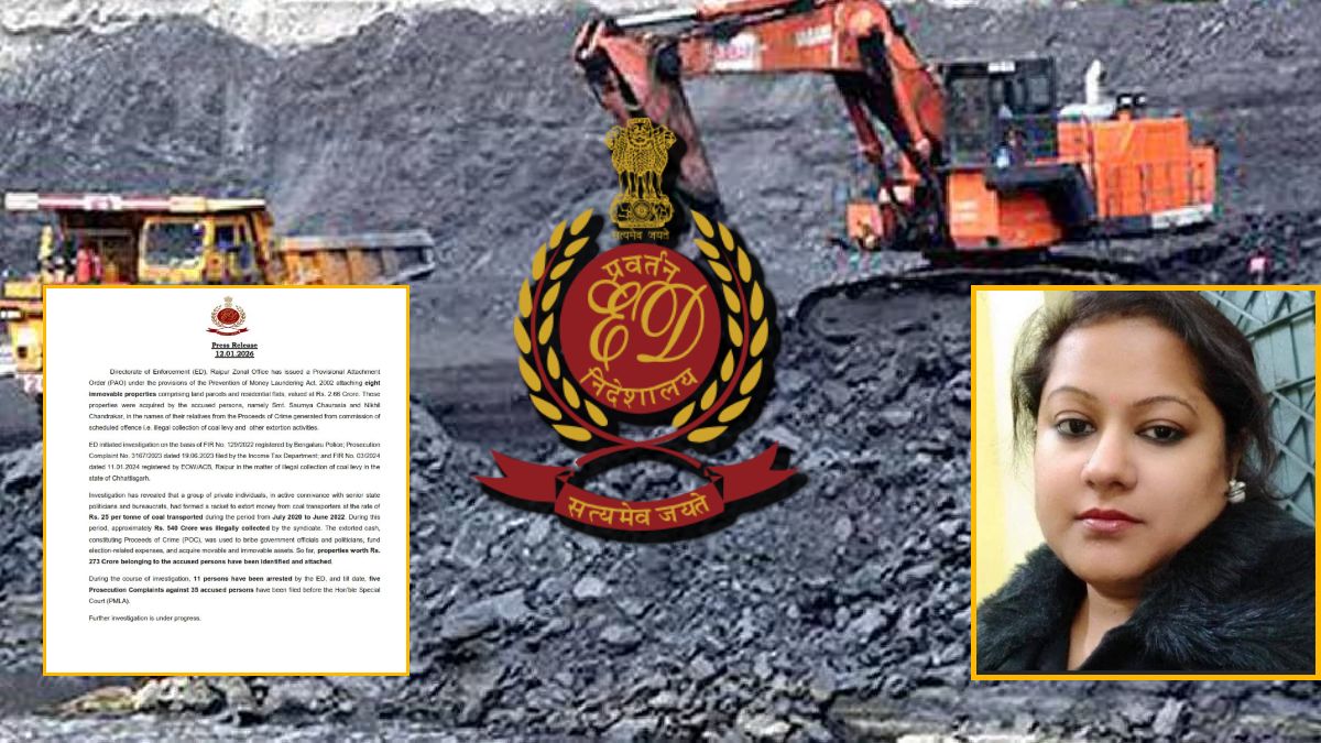 कोल लेवी घोटाला मामले में ED की बड़ी कार्रवाई, सौम्या चौरसिया और निखिल चंद्राकर से जुड़ी 2.66 करोड़ की संपत्तियां अटैच