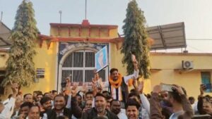 डॉ. अंबेडकर की तस्वीर और संविधान की किताब लेकर जेल से बाहर निकले विधायक बालेश्वर, कहा – सत्यमेव जयते, मुझे फर्जी मामले में फंसाया गया