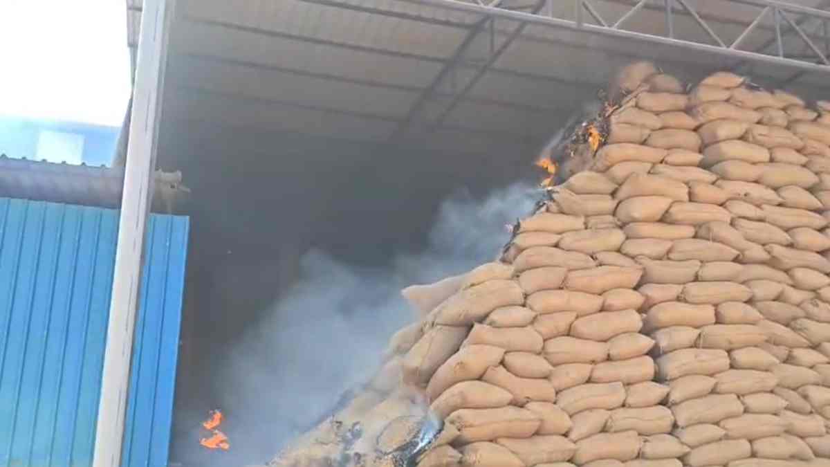 राइस मिल में लगी भीषण आग, लाखों के धान और खाली बारदाने जलकर खाक