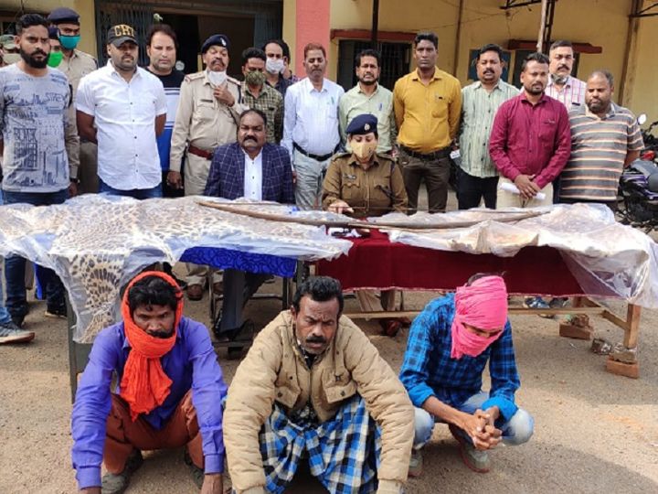 गिरफ्त में वन्यजीव तस्कर:लेपर्ड और हिरण की खाल के साथ 3 गिरफ्तार, महासमुंद स्थित सेंचुरी में तीर-धनुष से करते थे वन्यजीवों का शिकार